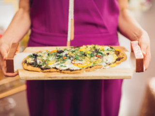 2. On a lightly floured surface, push/roll the dough out until it is very thin. For thin pizza, divide the dough into two and roll out. Transfer the dough to the prepared baking sheet. Spread the dough with olive oil. Add the garlic, lemon zest, basil, a pinch each of salt, pepper, and crushed red pepper flakes. Spread evenly over the dough. Add the artichokes, and cheese. Top with lemon 3-4 lemon slices. Transfer to the oven and bake 10-15 minutes or until the crust is crisp and the cheese has melted. Remove the pizza from the oven and top with basil, arugula and microgreens.