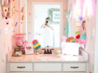 She put all her girl mom feelings into making this nursery as heartfelt as possible. She wanted their daughter’s nursery to be filled with wonder and culture, complete with tea parties, doll houses, playing dress up, and lots of Louisiana details. She picked a dreamy pink and white checked wallpaper for the nursey with gold accents and a pop of green. She sprinkled her design magic all over the bathroom with colorful, fun confetti. Her creative eye expanded to a wall dedicated to her “Louisiana girl.” The state song “You are my Sunshine” hangs next to the state fruit, strawberry, the state bird, pelican, the state insect, the honey bee, the state flower, magnolia, and a crawfish pacifier. Nothing says “Louisiana girl” like a crawfish pacifier. This fanciful nursery is filled with golden story books, fun shoes, jewelry, hair pieces, and princess dresses for anticipated hours of dress-up and tea parties. Quotes of inspiration complete the room to uplift and bring laughter, because there is nothing better than the laughter of children playing.