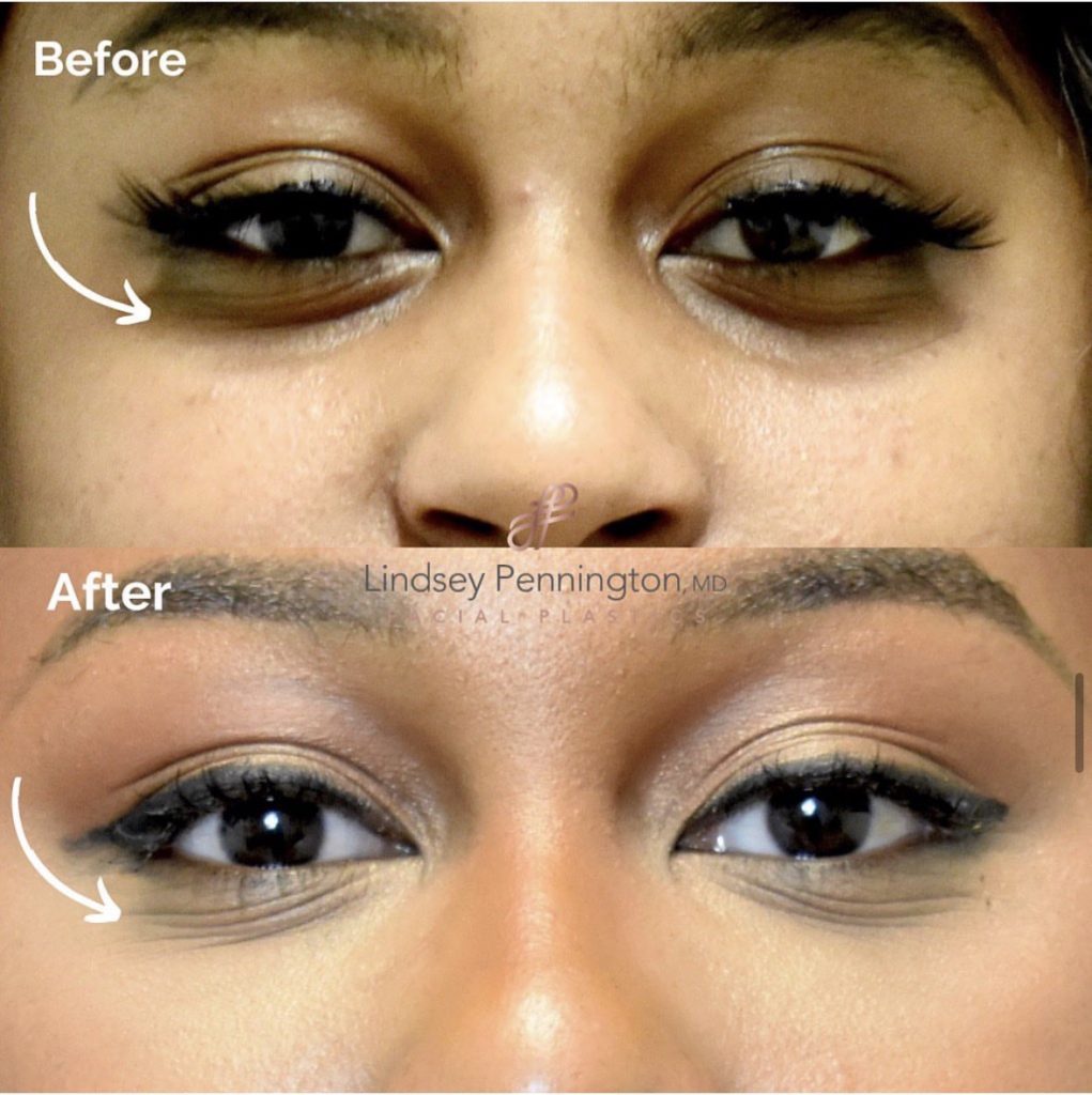 This beautiful patient had hereditary dark circles and hollowing under her eyes that always made her feel insecure. After a thorough discussion of her goals, tear trough filler (under eye filler) was determined to be the best treatment option for her.